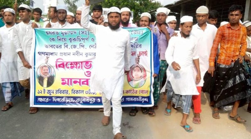 উপস্থিত বক্তাগণ বলেন বিশ্বের শ্রেষ্ঠ নবী মোহাম্মাদ সাঃ সম্পর্কে যে ন্যক্কারজনক, কুরুচিপূর্ণ অবমাননাকর মন্তব্য যারা করেছেন তার প্রতিবাদ জানানোর ভাষা আমাদের জানা নেই। তিনি যেটা বলেছেন তা কখনও বাক সাধীনতা হিসাবে বিবেচনা করা যায়না। এটা ধর্মীয় স্বাধীনতার লঙ্ঘন। ভারতবর্ষ একটি বহুজাতিও বহু ধর্ম নিরপেক্ষ গণতান্ত্রিক রাষ্ট্র। এখানে এমন মন্তব্যতে গণতন্ত্রের প্রতি আঘাত আনা। অবিলম্বে তাদের গ্রেপ্তার না করলে আমাদের এই প্রতিবাদ চলবে।