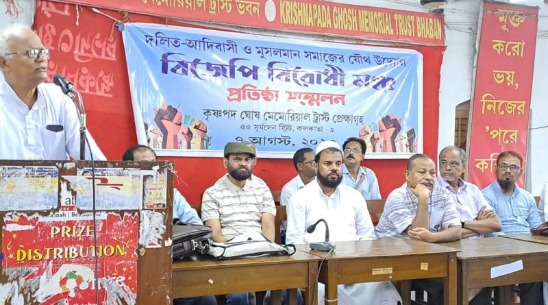 নিজস্ব সংবাদদাতা : বিজেপির বিরুদ্ধে সর্বাত্মক আন্দোলন গড়ে তুলতে দলিত মুসলিম ও আদিবাসী নেতৃবৃন্দের সমন্বয়ে বিজেপি বিরোধী মঞ্চ গঠিত হল। সোমবার কলকাতার শিয়ালদাহে মেমোরিয়াল হলে প্রতিষ্ঠা কনভেনশনের মাধ্যমে মঞ্চের আনুষ্ঠানিক আত্মপ্রকাশ ঘটে। মঞ্চের সভাপতি নির্বাচিত হয়েছেন দলিত নেতা সুকৃতি রঞ্জন বিশ্বাস। অন্যদের মধ্যে আছেন সংখ্যালঘু যুব ফেডারেশনের রাজ্য সম্পাদক মুহাম্মদ কামরুজ্জামান, আদিবাসী নেতা বীরেন মাহাতো, মাওলানা আব্দুল মাতিন, উৎপল মাহাতো, জাফরুল্লাহ মোল্লা, আলমগীর সরদার, মোহাম্মদ শাহাবুদ্দিন, উত্তম সরকার, বুজলে রহমান, অধ্যাপক আব্দুল ওহাব প্রমূখ বক্তব্য রাখেন।