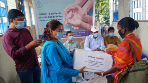 নিক্ষয় মিত্র প্রকল্পে রাজনগর হাসপাতালে যক্ষা রোগীদের সুষম খাবার বিতরণ করা হল বৃহস্পতিবার দুপুর সাড়ে বারোটা নাগাদ। জেলা স্বাস্থ্য ও পরিবার কল্যাণ দপ্তরের উদ্যোগে এবং জেলা শাসকের তরফে জেলার বিভিন্ন অংশে রক্ষা রোগীদের মধ্যে সুষম খাবার বিতরণের উদ্যোগ নেওয়া হয়েছে। যক্ষা রোগকে নির্মূল করার লক্ষ্যে এই মহতী উদ্যোগ নেওয়া হয়েছে। এই উপলক্ষে রাজনগর ব্লক প্রাথমিক স্বাস্থ্য কেন্দ্রের ব্যবস্থাপনায় স্বাস্থ্যকেন্দ্রে ৪১ জন যক্ষা রোগীকে সুষম খাদ্য বিতরণ করা হলো। সুজি, চিনি, বাদাম, ছাতু, সয়াবিন, ছোলা, সরষের তেল প্রভৃতি ১২-১৩ রকমের আইটেম রোগীদের মধ্যে বিতরণ করা হলো। উপস্থিত ছিলেন রাজনগরের বিডিও শুভাশিস চক্রবর্তী, পঞ্চায়েত সমিতির পূর্ত কর্মাধ্যক্ষ সুকুমার সাধু, বি.এম.ও.এইচ ডক্টর তীর্থঙ্কর সিনহা, রাজনগর থানার এ.এস.আই পুলক কুমার হাজরা, পঞ্চায়েত সমিতির সহ-সভাপতি পরিমল সাহা, সমাজকর্মী মহম্মদ শরীফ সহ অন্যান্যরা।