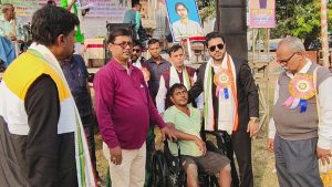 সেখ সামসুদ্দিন, ৩ ডিসেম্বরঃ ওয়েস্ট বেঙ্গল হ্যান্ডীকাপ রাইটস্ কমিশন রাজ্য কমিটির পক্ষ হতে ১৩ তম বিশ্ব প্রতিবন্ধী দিবস উদযাপন করা হয় পূর্ব বর্ধমান জেলার মেমারি শহরে। একইসঙ্গে বিপ্লবী শহীদ ক্ষুদিরাম বসুর জন্ম দিবস ও প্রয়াত ডাঃ প্রকাশ চন্দ্র দাসের স্মরণসভা করা হয়। মেমারি পৌরসভার ইছাপুর ফুটবল মাঠে ওয়েস্ট বেঙ্গল হ্যান্ডীক্যাপ রাইটস কমিশনের পূর্ব বর্ধমান জেলা কমিটির ব্যবস্থাপনায় এদিনের সভায় উপস্থিত ছিলেন ওয়েস্ট বেঙ্গল হ্যান্ডীক্যাপ রাইটস কমিশনের চেয়ারম্যান তথা বিশিষ্ট আইনজীবী ও সমাজসেবী বাবান ঘোষ, রাজ্য সভাপতি, রাজ্য সহ সভাপতি, ডাইরেক্টর ওয়েস্ট বেঙ্গল স্টেট কো অপারেটিভ ইউনিয়ন শ্যামলেন্দু ব্যানার্জী, সমাজসেবী, আরতি হালদার, রীমা ব্যানার্জী, মুকেশ শর্মা (মহারাষ্ট্র) সহ বিশিষ্ট ব্যক্তিবর্গ। বেলা ১১ টায় মেমারি মালগুদাম হতে ট্যাবলো সহযোগে প্রতিবন্ধীদের নিয়ে পথ পরিক্রমা শুরু করে ফুটবল মাঠে শেষ হয়। তারপর শহীদ ক্ষুদিরাম বসু ও প্রয়াত ডাঃ প্রকাশ চন্দ্র দাসের প্রতিকৃতিতে মাল্যদান ও স্মৃতিচারণের মধ্যে দিয়ে কর্মসূচি শুরু হয়। প্রথমে মেমারি স্বপ্ন সন্ধানী শিক্ষা কেন্দ্রের নৃত্যশিল্পীদের নিয়ে অনুষ্ঠান করা হয়। পরে অতিথিবৃন্দের বক্তব্য শেষে কুড়ি জন মত ব্যক্তিকে প্রতিবন্ধী সহায়ক যন্ত্র প্রদান করা হয়। কমিশনের চেয়ারম্যান বাপান ঘোষ ও রাজ্য সহ-সভাপতি, মন্মথ দাস জানান আগামী দিনে শুধু প্রতিবন্ধী ভাই বোন নয়, সমাজের দুঃস্থ শ্রেণীর মানুষদের স্বাস্থ্য পরীক্ষা, বস্ত্র প্রদান সহ নানান সামাজিক কাজের মাধ্যমে তারা পাশে দাঁড়াতে চান।