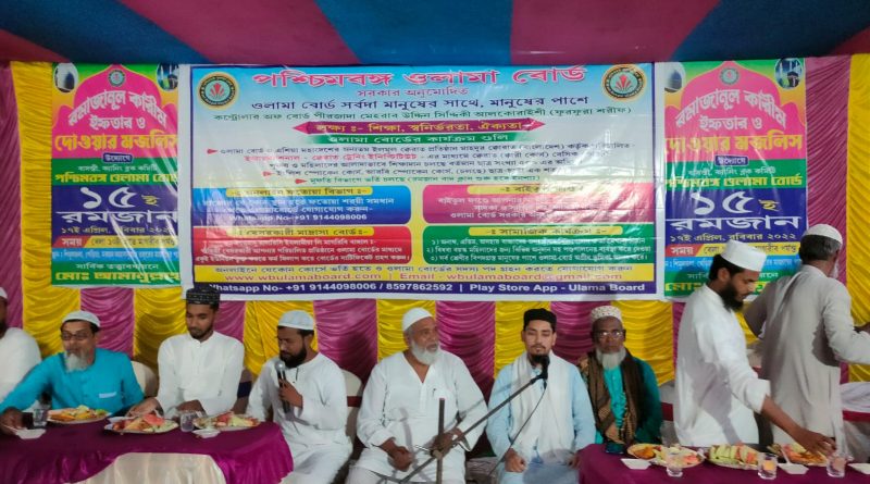 জাহির হোসেন মন্ডল, দক্ষিণ ২৪ পরগনা : পশ্চিমবঙ্গ ওলামা বোর্ড এর উদ্যোগে গতকাল শিমুলতলায় মরহুম আহসানুল্লাহ সাহেবের মাজারের পাশে ইফতার ও দোয়ার মজলিস সংঘটিত হয়।