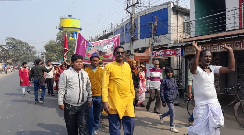 নূর আহমেদ, মেমারি : হিন্দুধর্মের মতুয়া সম্প্রদায়ের প্রতিষ্ঠাতা পূর্ণব্রক্ষ শ্রী শ্রী হরিচাঁদ ঠাকুর। ১৫জানুয়ারি,বুধবার বেলায় পূর্ব বর্ধমান জেলার মেমারি পৌরসভা এলাকার সোমেশ্বর তলা পুকুর পাড়ের দক্ষিণ দিক থেকে ডংঙ্কা কাসি ও মতুয়া নিশান সহযোগে প্রায় ২০০ মতুয়া ভক্ত শোভাযাত্রা করলেন মতুয়া সম্প্রদায়ের ঠাকুর হরিচাঁদ – শান্তি মাতার মূর্তি নিয়ে। শোভাযাত্রা স্টেশনবাজার, চকদিঘীমোড় হয়ে মেমারি তারকেশ্বর রোড দিয়ে পারিজাত নগর উদয়পল্লী পশ্চিমে পুরাতন হরি মন্দিরে শেষ হয়। জানা যায় শ্রী শ্রী হরিচাঁদ গুরুচাঁদ মতুয়া মহা সংঘের উদ্যোগে পারিজাত নগর উদয়পল্লী পশ্চিমে পুরাতন হরি মন্দিরে ঠাকুর হরিচাঁদ – শান্তি মাতার মূর্তি স্থাপন করা হবে। শুনবো মতুয়া সমাজের বিশিষ্ট প্রতিনিধি ও শিক্ষক কৃষ্ণপদ বিশ্বাস কী জানালেন