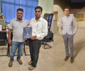 গবেষক জাকির হোসেন মোল্লা (মাঝে) অধ্যাপক ড.সেখ মুহম্মদ ওবায়দুল্লাহ (আলিয়া বিশ্ববিদ্যালয়) (বামে)এবং অধ্যাপক ড. সৌম্য সেন (কলকাতা বিশ্ববিদ্যালয়) (ডানে )।