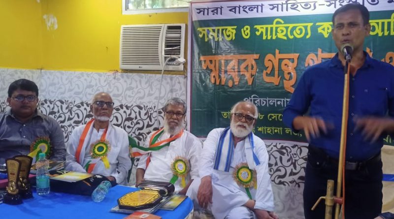 রহমতুল্লাহ, জঙ্গিপুর : সারাবাংলা সাহিত্য সংস্কৃতি মঞ্চ আয়োজিত সমাজ ও সাহিত্যে কাজী আমিনুল ইসলাম স্মারক গ্রন্থ প্রকাশ ও সংবর্ধনা অনুষ্ঠান হয় রঘুনাথগঞ্জে সাহানা লজে। এদিন বেলা ১২টার সময় বিশিষ্ট সঙ্গীতশিল্পী জয়কুমার ধারার উদ্বোধনী সংগীত এবং আহ্বায়ক শেখ মফিজুলের স্বাগত ভাষণের মধ্য দিয়ে অনুষ্ঠানের সূচনা হয়। অনুষ্ঠানে সভাপতির আসন অলংকৃত করেন বিশিষ্ট প্রাবন্ধিক মুজিবুর রহমান, বিশিষ্ট সাহিত্যিক কাজী আমিনুল ইসলামের উপর লেখা কবিতা পাঠ করেন জেলার বিভিন্ন জায়গা থেকে আগত কবি- সাহিত্যিকরা। এছাড়াও বিশিষ্ট শিক্ষাবিদ মোঃ সোহরাব, এস. এম নিজামউদ্দিন, মজিবুর রহমান, হাসানুজ্জামান প্রমূখরা কাজী আমিনুল ইসলামের জীবন কাহিনী তুলে ধরেন। কাজী আমিনুল ইসলাম এবং তার স্ত্রী কাজী কল্পনা সহ তার পরিবার সকলেই সাহিত্য চর্চা করেন। এদিন প্রায় ১০জন কবি সাহিত্যিক ও সমজসেবীদের সাহিত্যিক কাজী আমিনুল ইসলাম সম্মাননা তুলে দেন চাতক ফাউন্ডেশন এর পক্ষ থেকে। সমগ্র অনুষ্ঠানটি সুচারুরূপে সঞ্চালনা করেন শেখ মফিজুল।